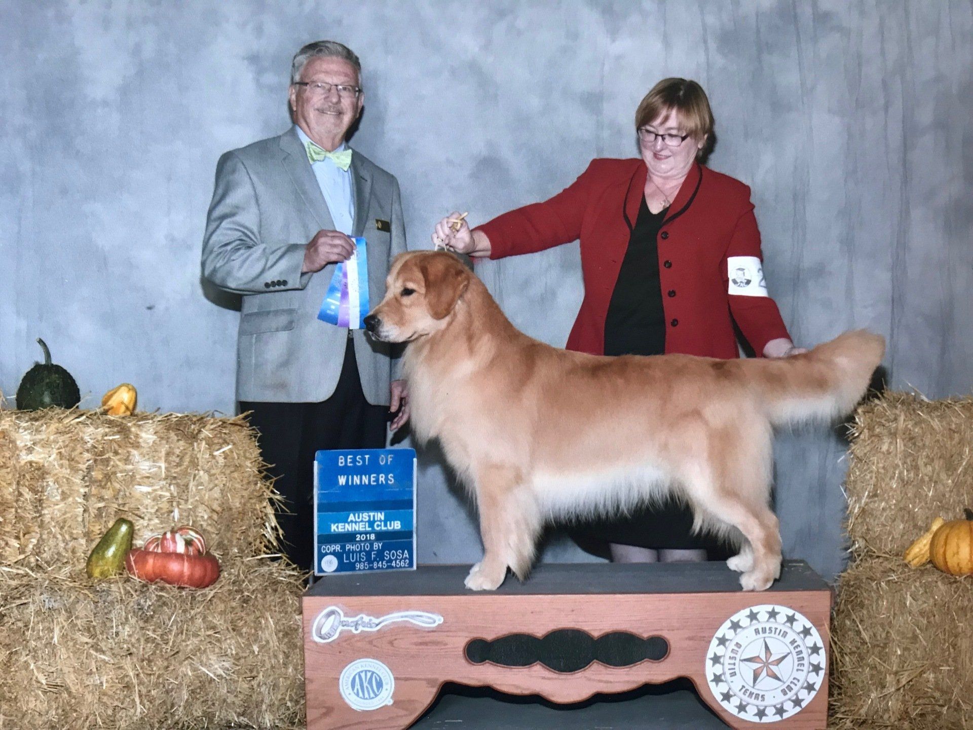 Occasionally they BOARD show dogs and companions for a select few clients, however, they no longer handle professionally. While they continue to exhibit their own dogs in Owner Handler competition, they are concentrating more on their breeding program, teaching conformation handling lessons, and mentoring new Golden owners.